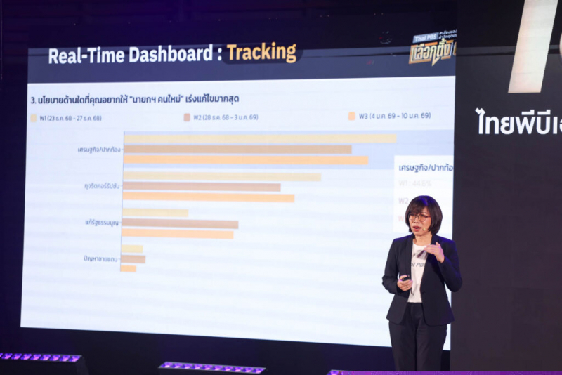 Real-time measurement of political party popularity, presented by Kanokporn Prasitphon, Director of Digital Media, Thai PBS.